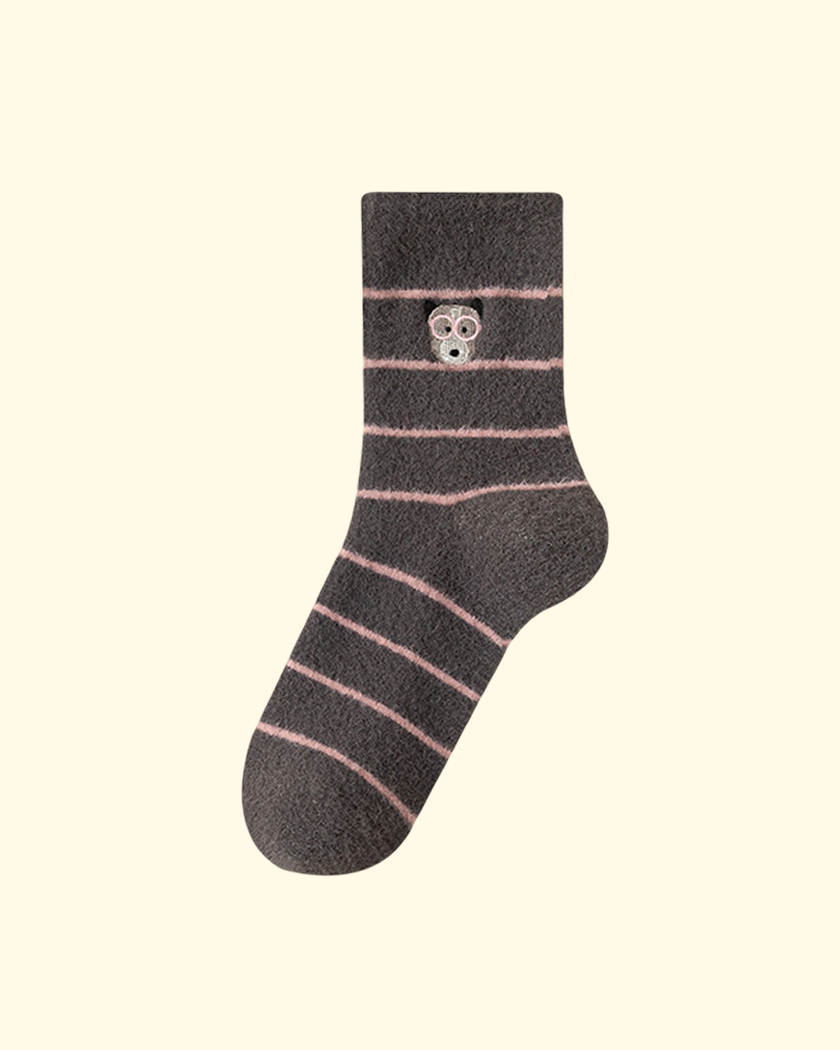Curious Pup Embroidered Thermal Socks with Pink Stripes
