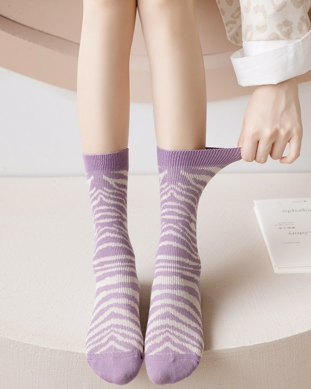 Lilac Zebra Stride | Soft Cotton Blend Zebra Stripe Socks