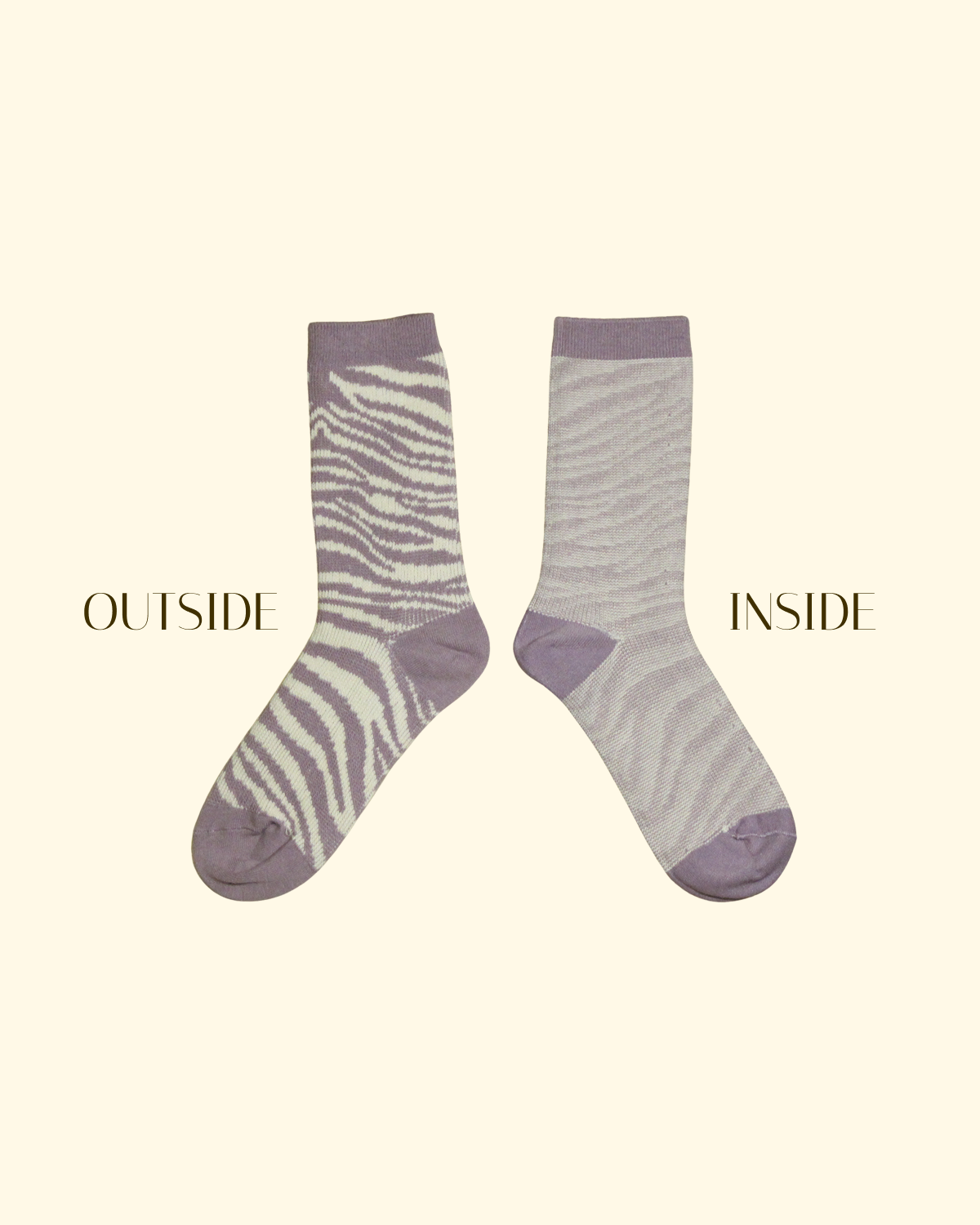 Step into the wild side with these lilac zebra socks. A bold mix of playful lilac and cream stripes makes every step fun, stylish, and full of energy.