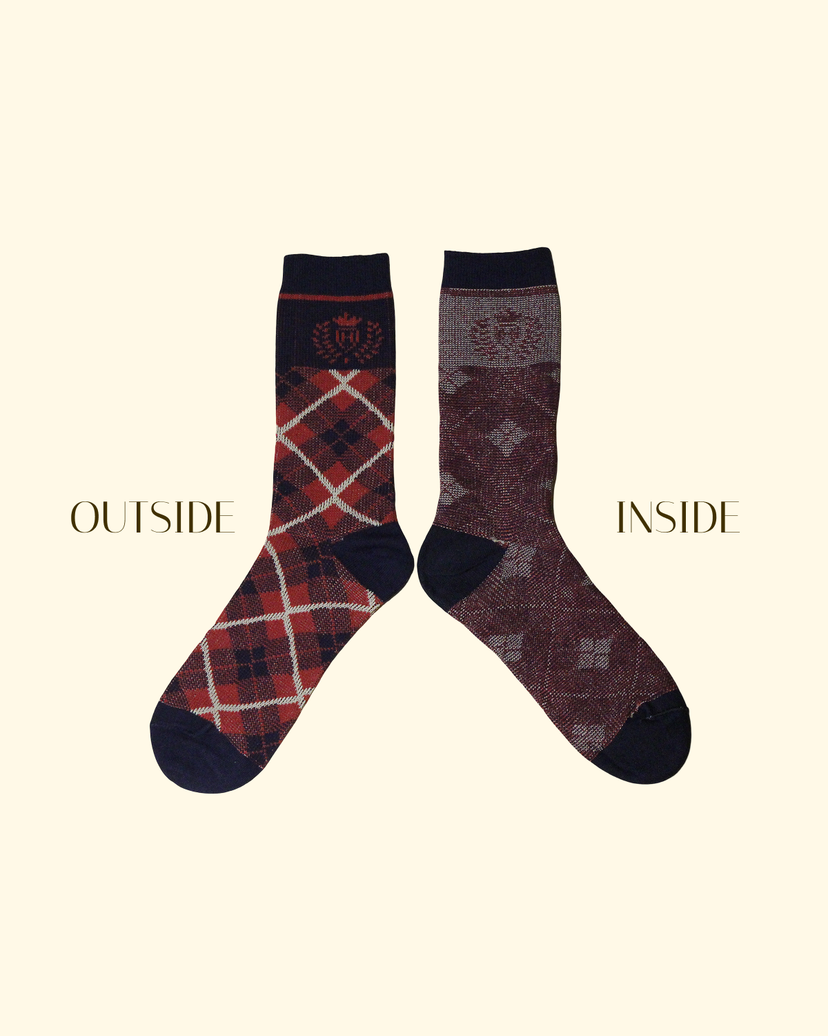 Featuring bold red-and-navy argyle and a crown emblem, these socks channel both tradition and individuality. Perfect for adding a distinguished finish to both casual and smart outfits.