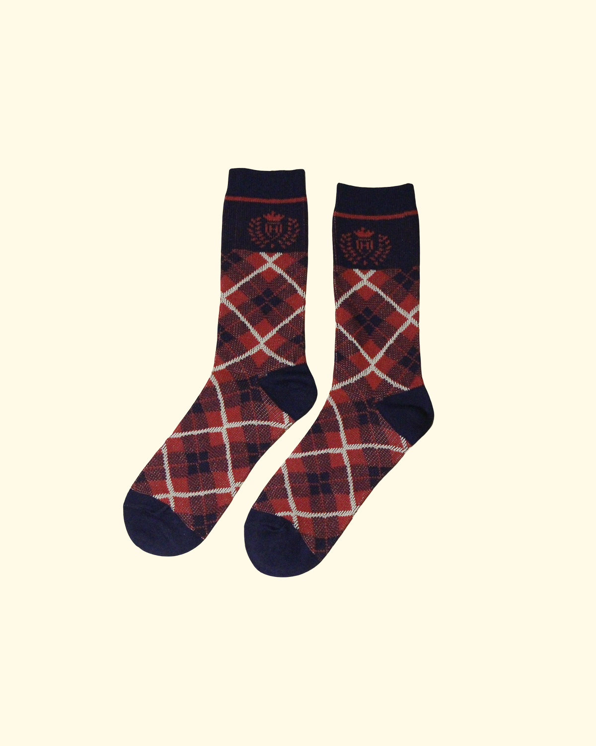 Royal Argyle Cotton Socks | Red & Navy Plaid with Crown Accents